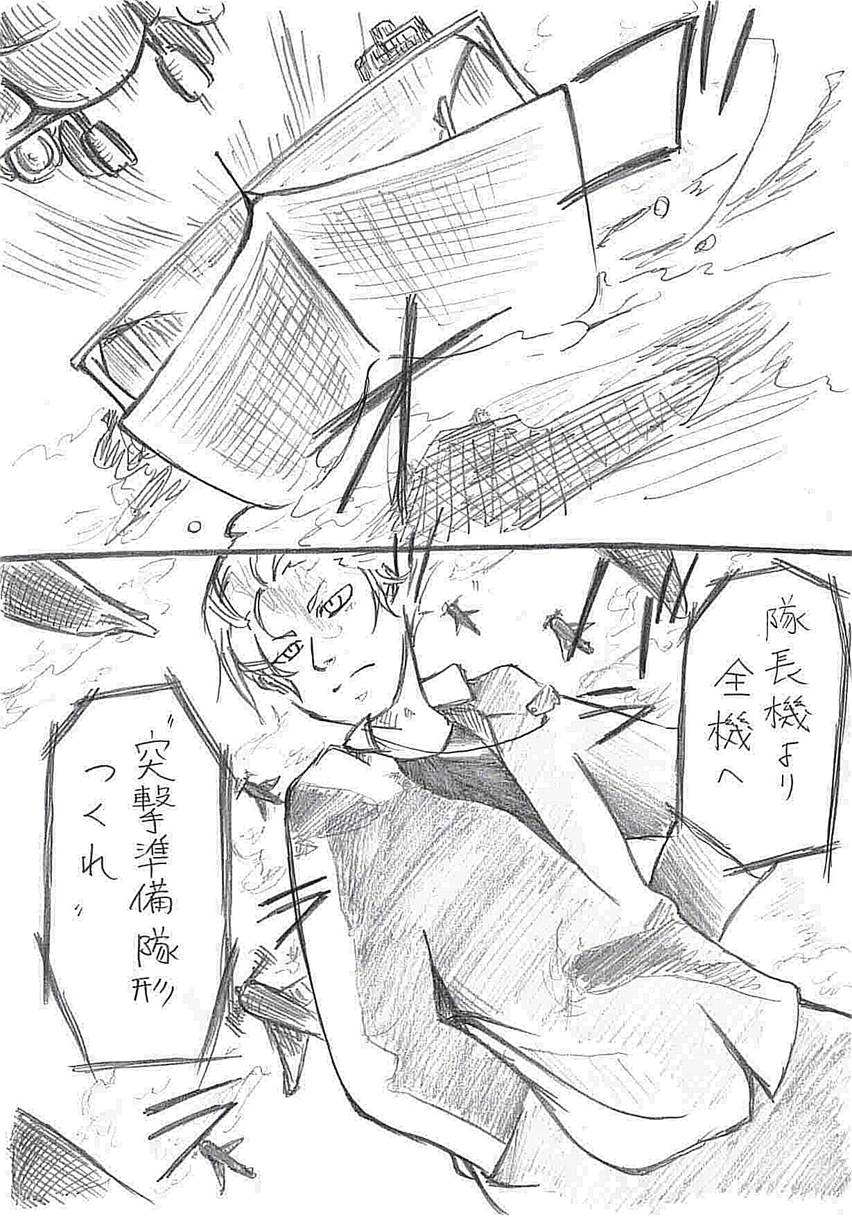 一:ハイ、隊長機の形が違います。